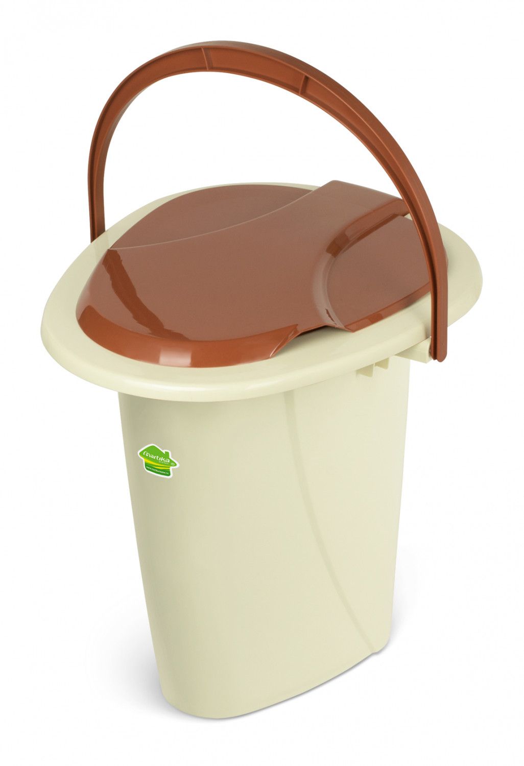 Ведро оснащено крышкой, что препятствует распространению неприятных запахов и ручкой для удобной переноски.