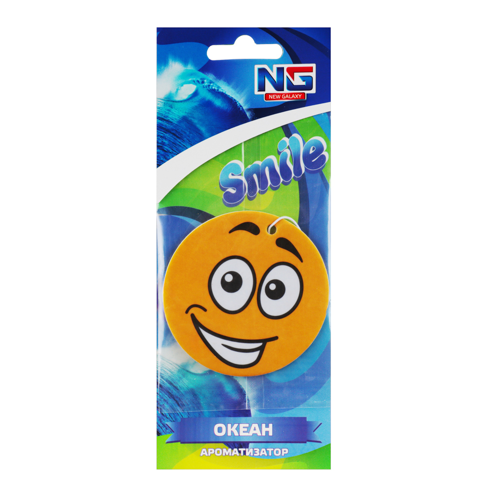 Автомобильный ароматизатор NEW GALAXY (Новая Галактика) "Смайл" с ароматом океана выполнен из плотной бумаги и пропитан парфюмированым средством.