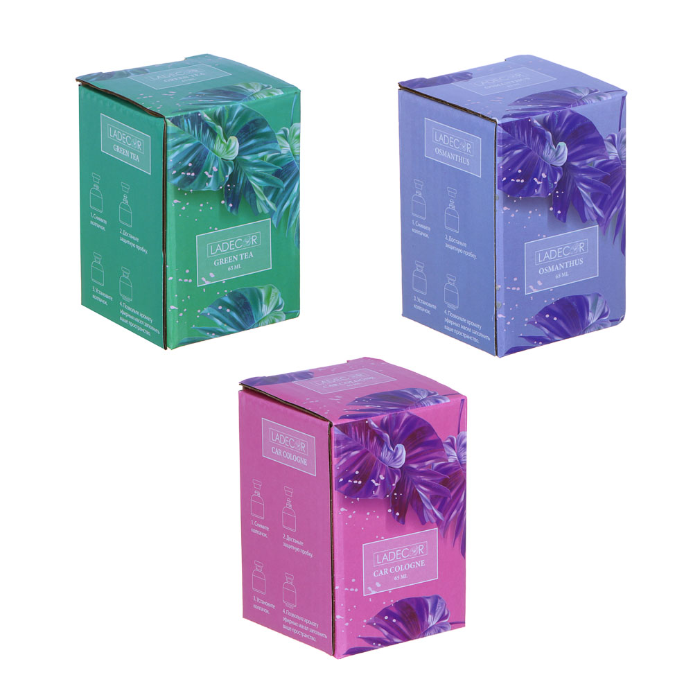 LADECOR Аромадиффузор для автомобиля и помещения, 65 мл, зеленый чай, османтус, одеколон