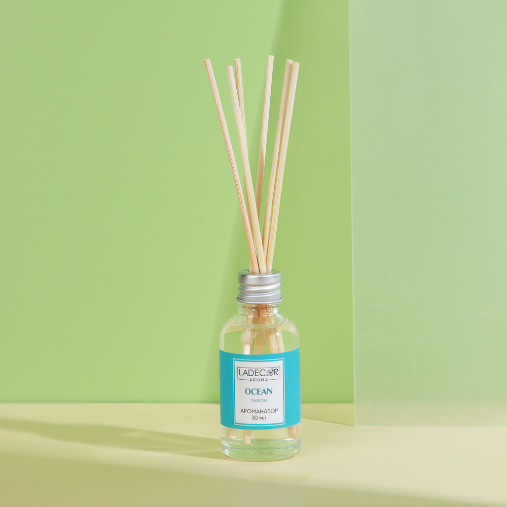 Аромадиффузор с палочками LADECOR в виде миниатюрной бутылочки наполнит помещение приятным ароматом и идеально подойдет для дома или офиса.