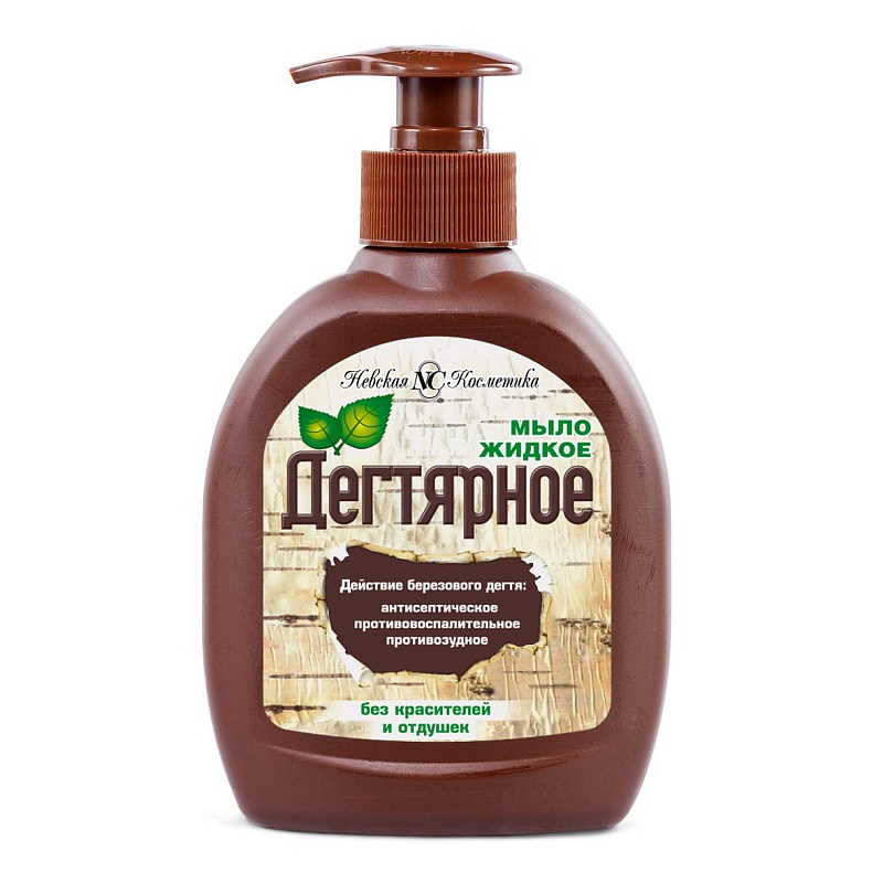 Жидкое мыло без красителей и отдушек "Дегтярное" подходит для ухода за руками и телом.