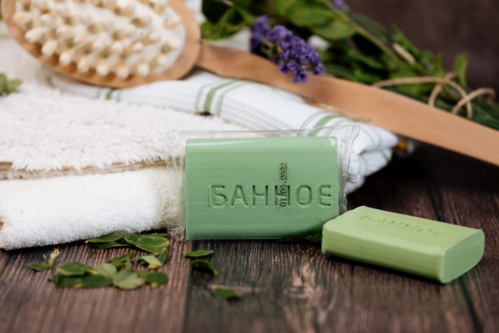 Мыло туалетное "Банное" вырабатывается из натурального органического сырья с добавлением высококачественных отдушек.