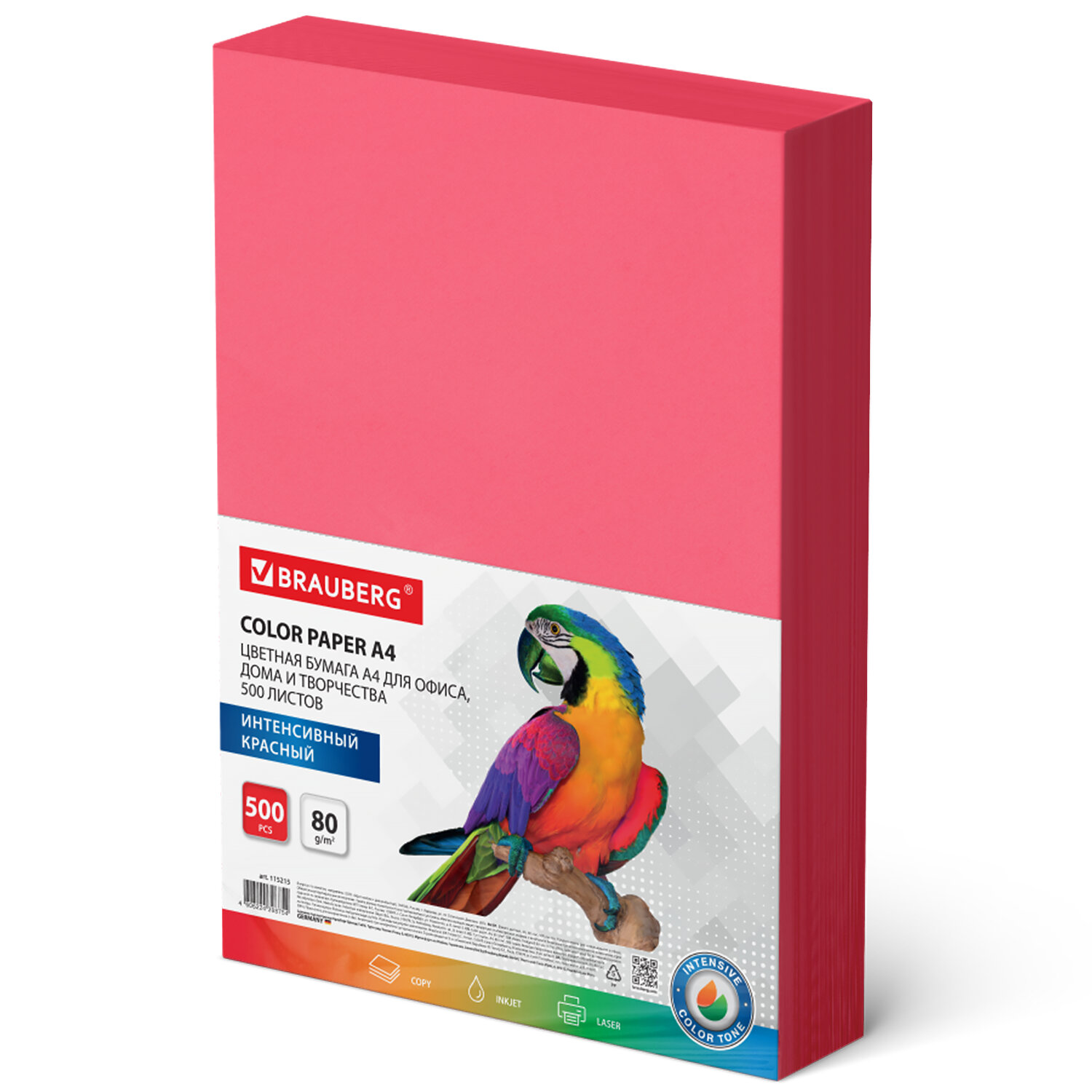 Бумага для принтера A4 Brauberg интенсивный красный 500л