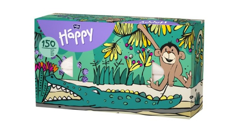 Белла платочки универсальные двухслойные Вaby Happy (Беби Хеппи) - носовые трехслойные бумажные платочки из 100% целлюлозы очень нежные и не содержат отдушек.
