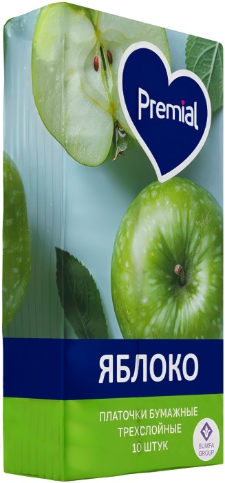 Premial Платочки бумажные 3-х слойные с ароматом зеленого яблока 10шт