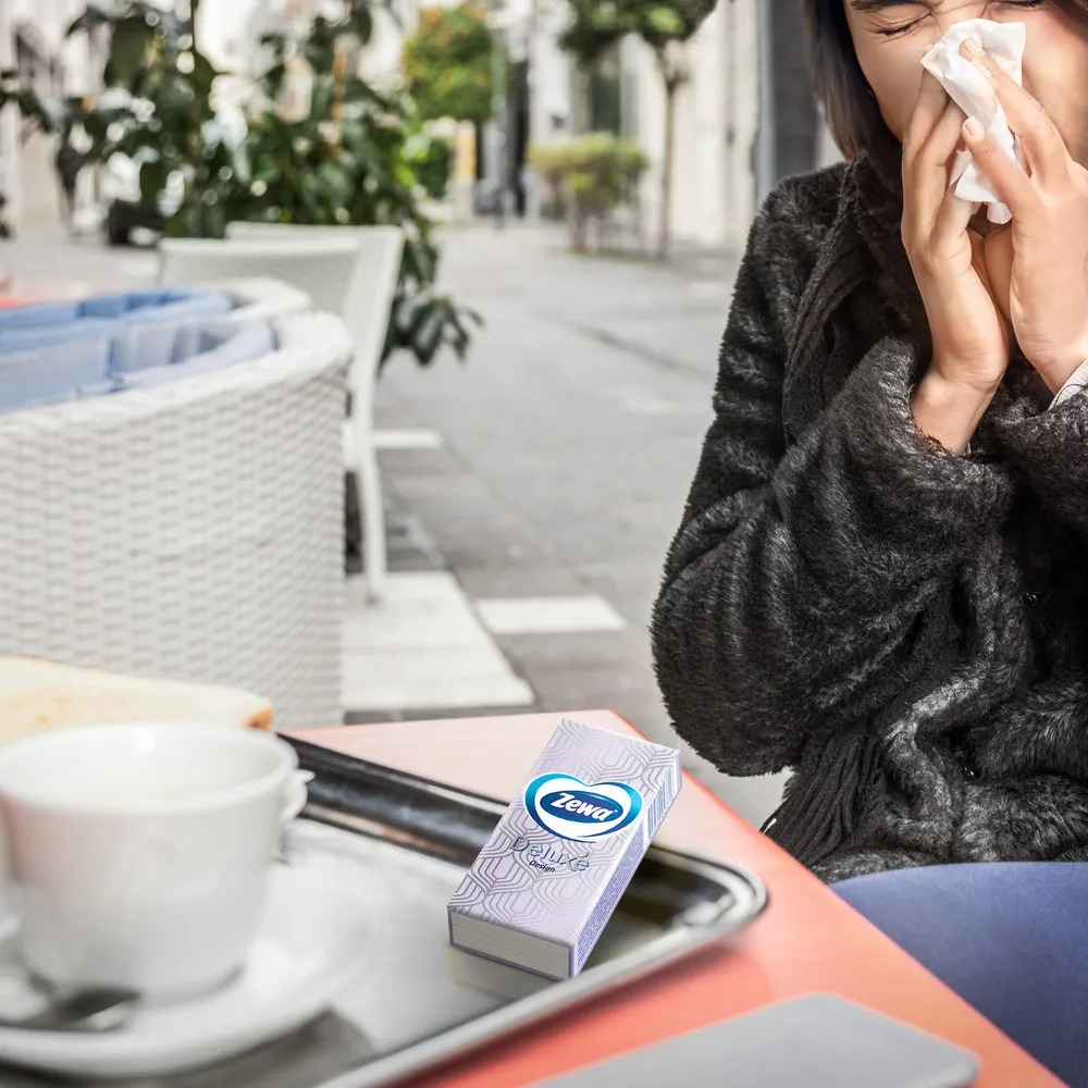 С бумажными платочками Zewa Deluxe в удобной индивидуальной упаковке с разными стильными дизайнами, вы сможете расслабиться, зная, что члены Вашей семьи чувствуют заботу и комфорт.