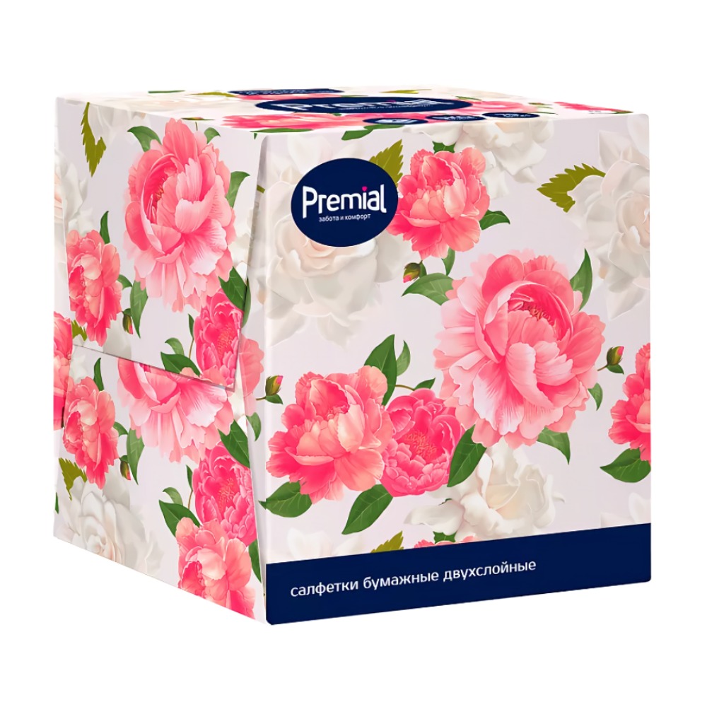 Premial Салфетки бумажные многослойные белые в коробке (нон-стоп) 70шт