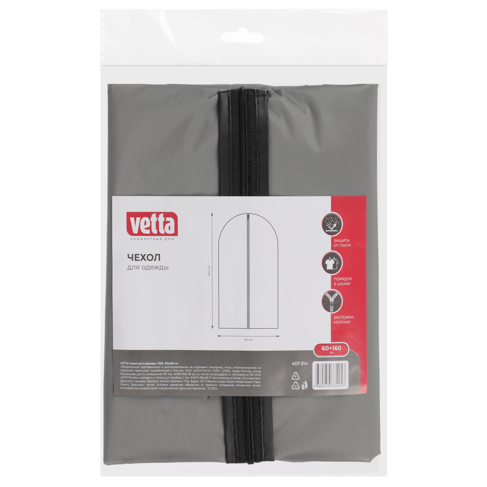 VETTA Чехол для одежды ПВХ, 60х160см