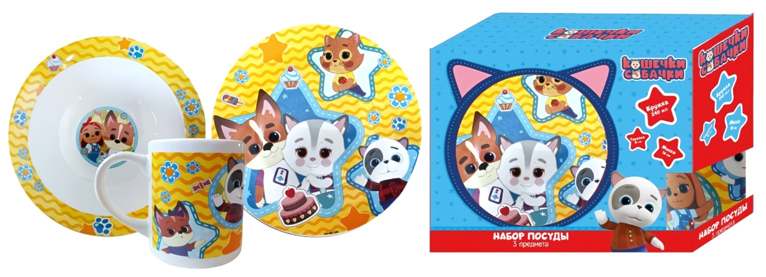 Набор Кошечки-Собачки 3 предм: кружка 240мл, миска 18см, тарелка 19см в подар.упак.