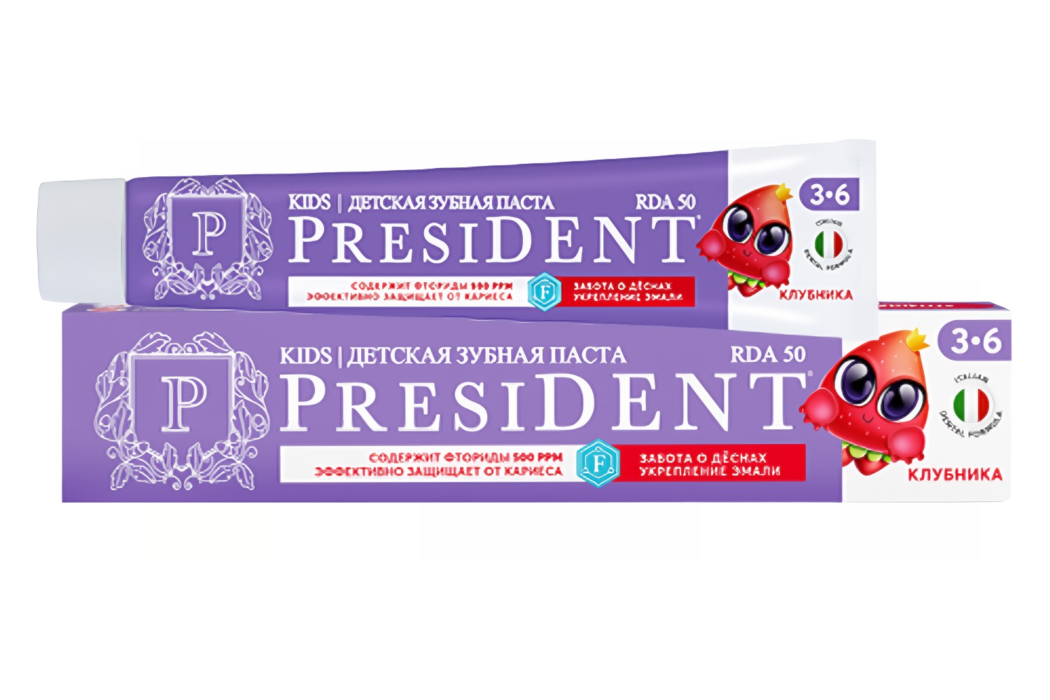 ПрезиДент зубная паста детская 3-6лет Клубника 50/70г