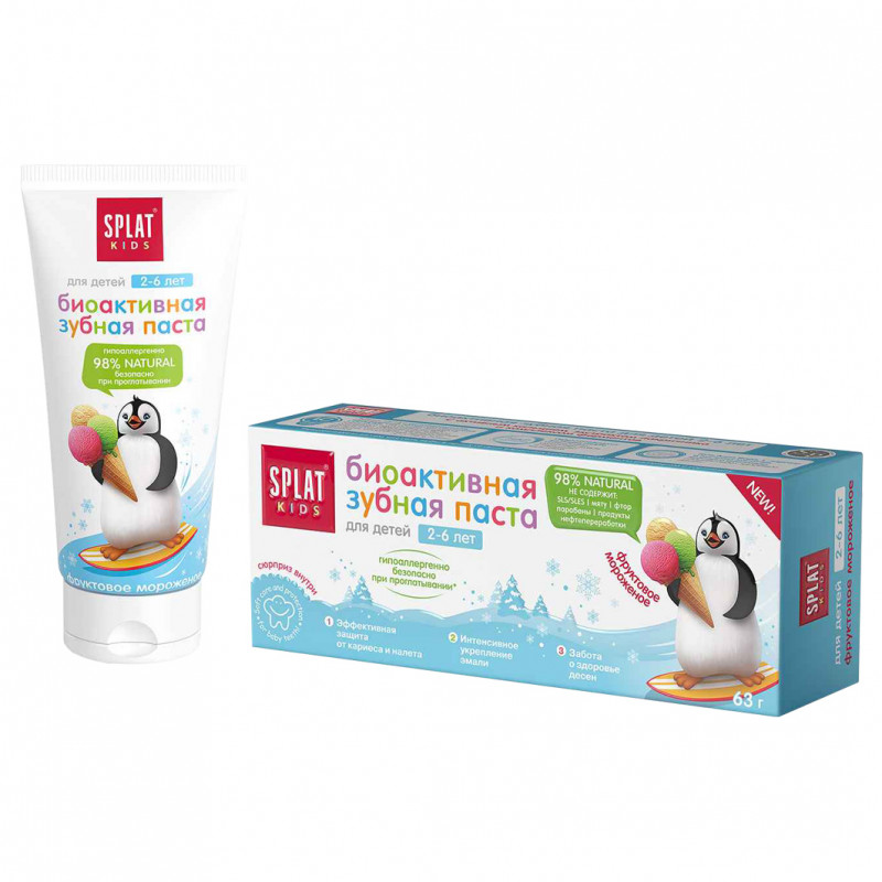 Зубная паста натуральная Splat Kids "Фруктовое мороженое" поможет детям и их родителям научиться чистить зубки в игровой форме и без капризов.
