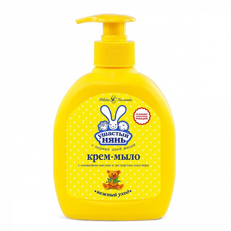 Жидкое мыло для детей "Ушастый нянь" содержит природные ингредиенты в составе: сок алоэ вера и масло оливы, которые положительно влияют на состояние кожи.