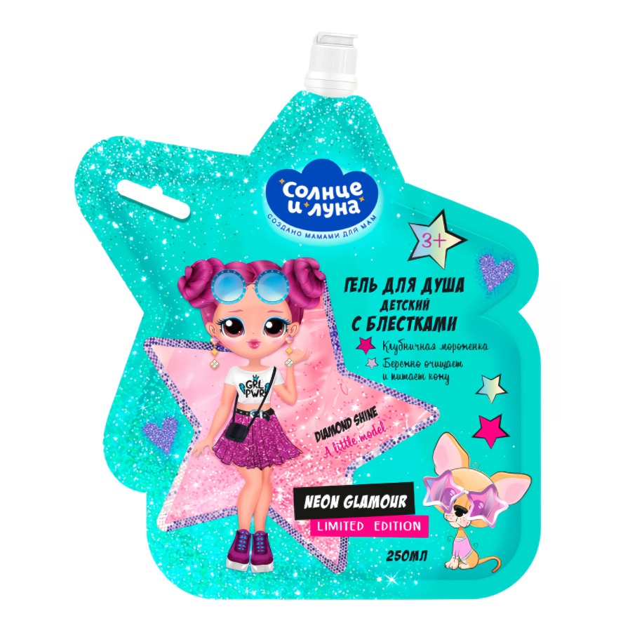 Солнце и Луна Гель для душа детский с блестками 3+ дой-пак 250мл