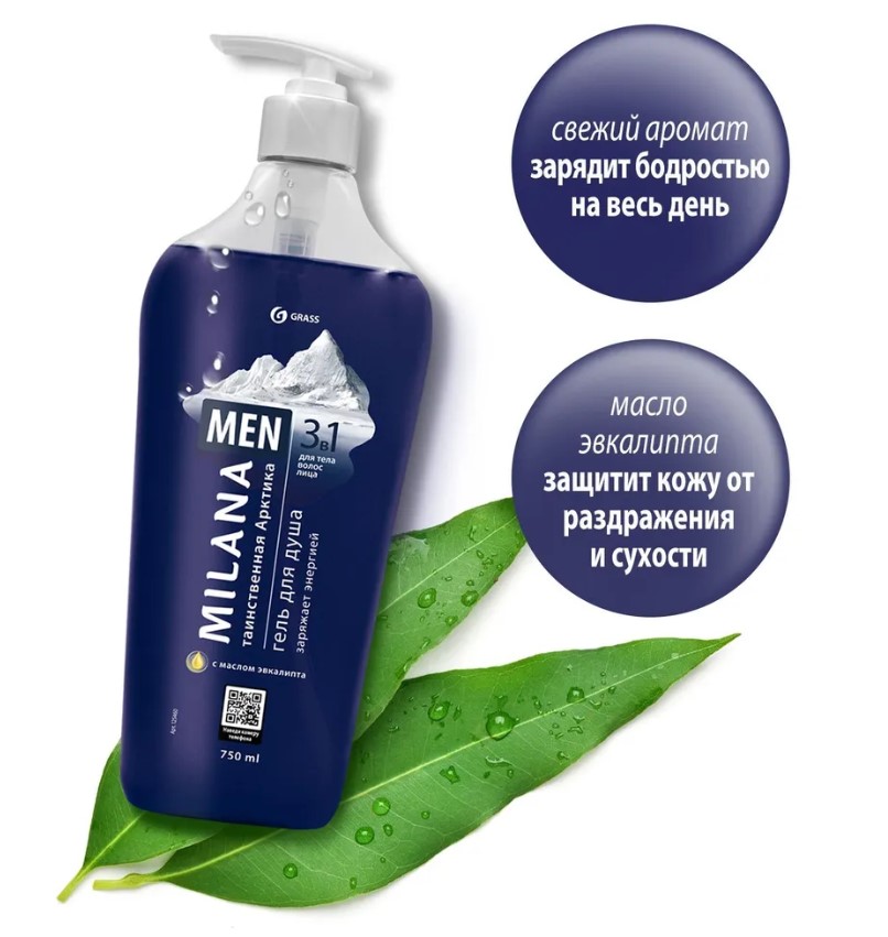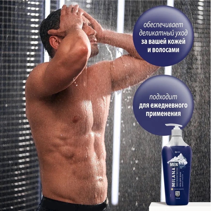Milana Men гель для душа таинственная арктика с маслом эвкалипта 750 мл