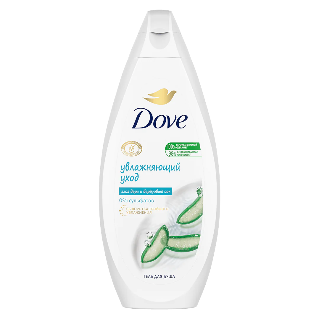 Гель для душа Дав "Увлажняющий уход" с алоэ вера и березовым соком образует нежное облако кремообразной пены, заботливо очищающее кожу.