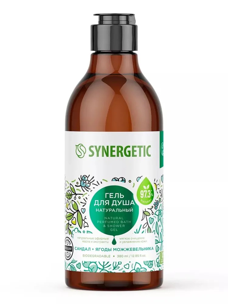 Натуральный биоразлагаемый гель для душа SYNERGETIC (Синергетик) «Сандал и ягоды можжевельника» — это деликатное средство для очищения кожи, на 99,1% состоящее из натуральных компонентов.
