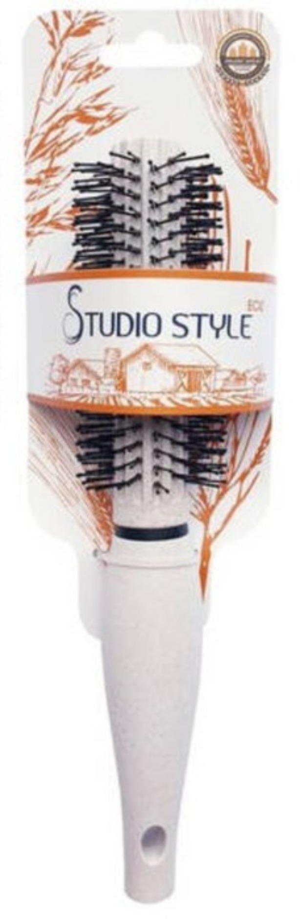 Узкая щетка-брашинг для волос с частыми тонкими пластиковыми зубчиками "Studio Style ECO" (Студио стайл эко) бережно массирует кожу головы и улучшает микроциркуляцию.