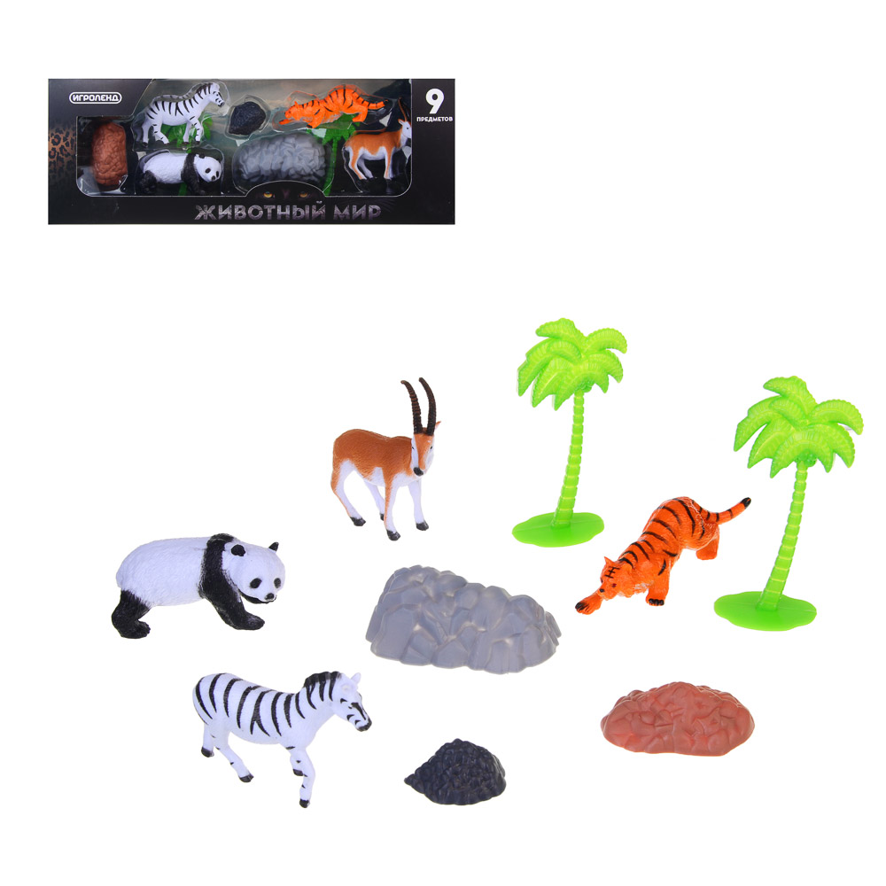 ИГРОЛЕНД Игровой набор с животными, 9 предметов, PP, PVC, 31,5х11,5х 5см, 2 дизайна