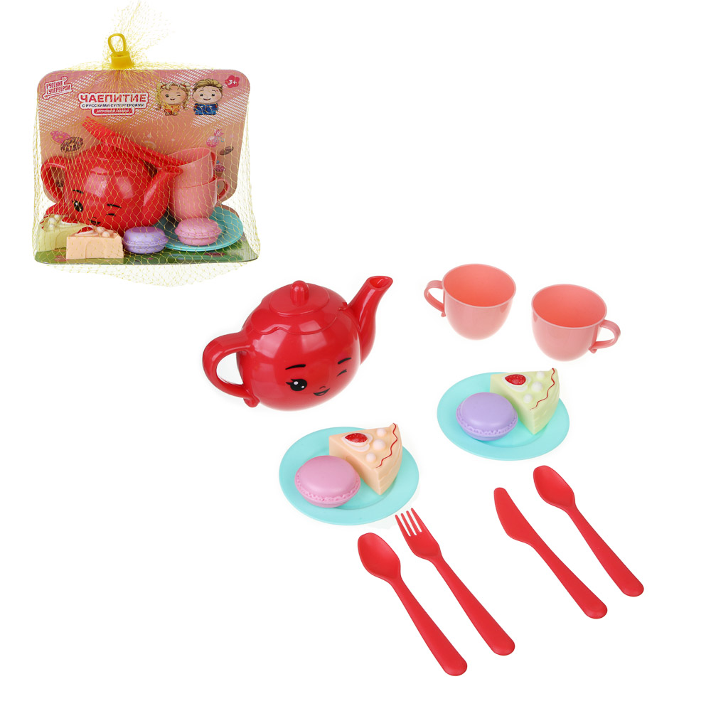 ИГРОЛЕНД Набор игровой посудка "Чаепитие с Русскими Супергероями", 14 пр., РР, 18*12*14см