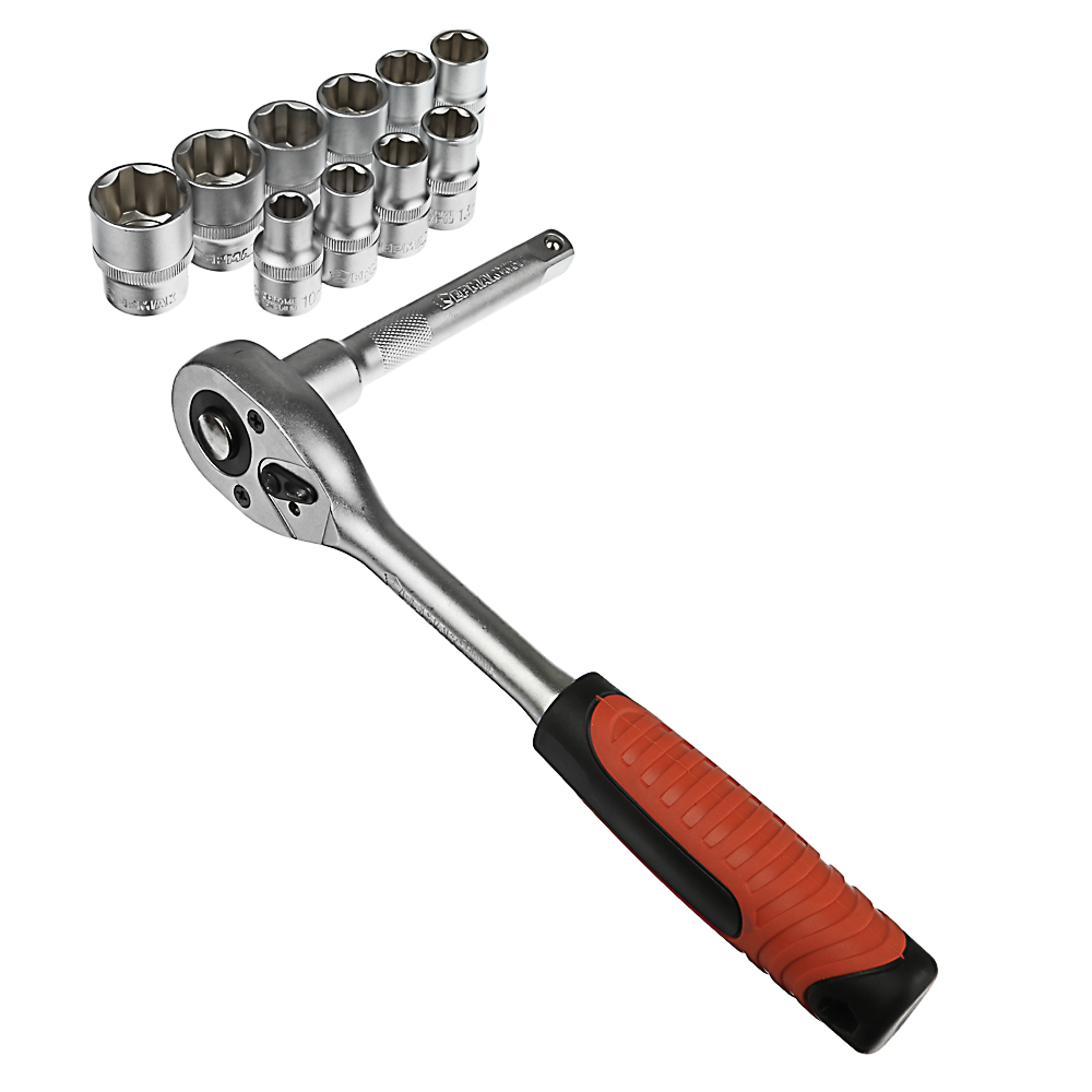 Изделия набора изготовлены из хромованадиевой и инструментальной стали, что гарантирует работу при больших нагрузках и долгий срок службы.