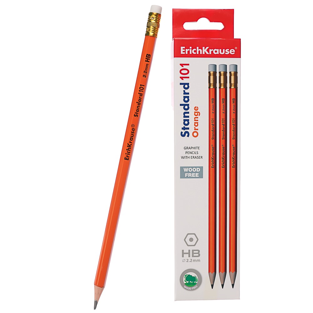 Erich Krause Карандаш чернографитный Standard пластиковый шестигранный с ластиком
