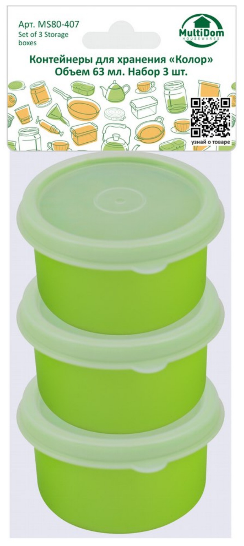 Набор контейнеров для хранения из 3 штук "Колор" 63мл