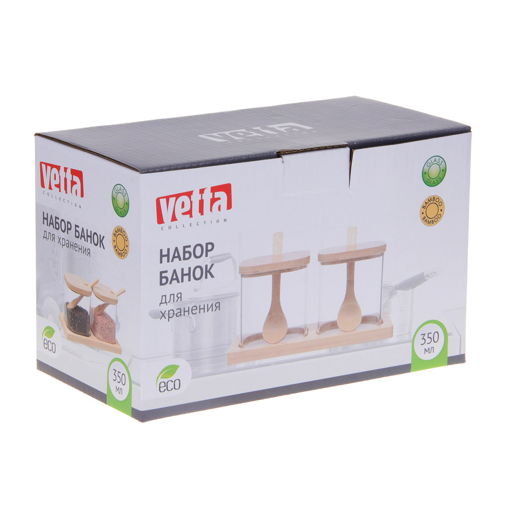 VETTA ЭКО Вуд Набор банок для хранения с ложкой, 9х8х8см, стекло, бамбук