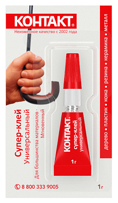 Супер-клей "Контакт" универсальный КМ384-112 - однокомпонентный моментальный клей на основе этилцианакрилата.