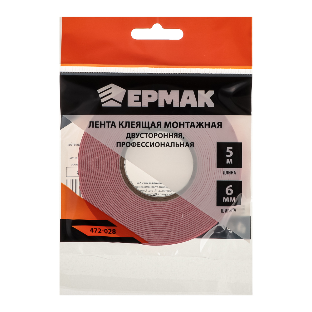 ЕРМАК Клейкая лента монтажная 2-х стороняя 5м