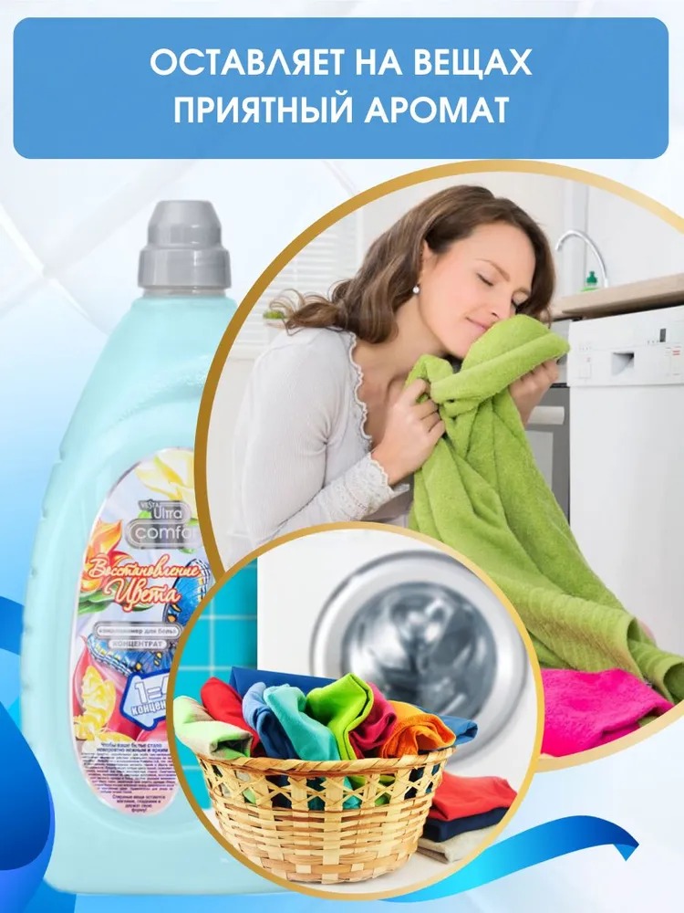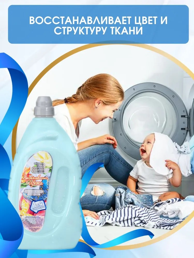 Полностью выполаскивается из тканей и не остается на одежде, облегчает глажение и обладает антистатическим эффектом.