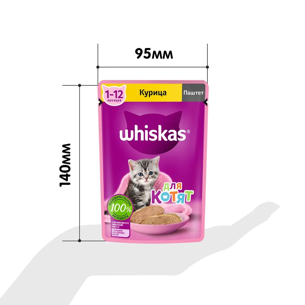Whiskas для котят "Паштет с курицей" — это сбалансированный рацион для здорового роста вашего малыша.