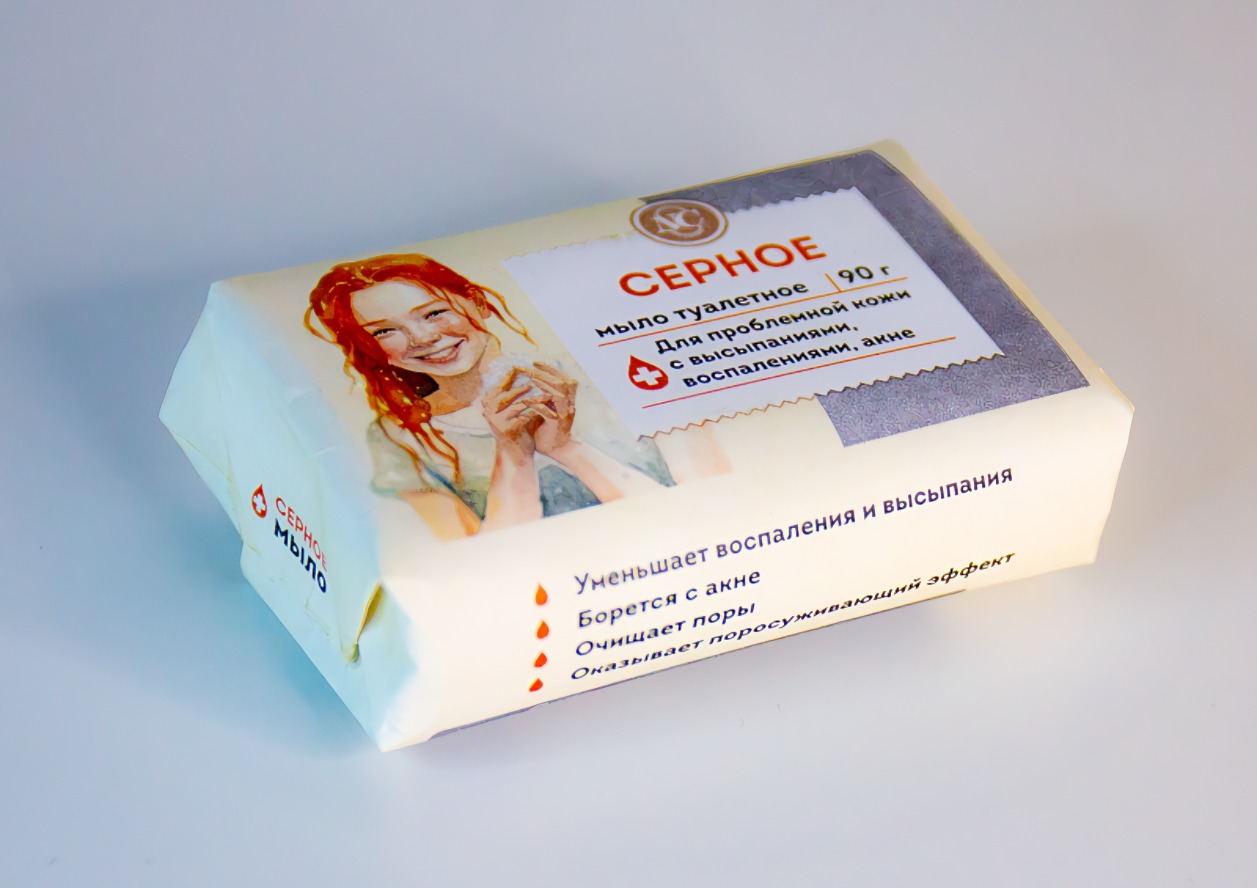 За антикомедогенное действие отвечает сера, которая является главным активным ингредиентом мыла Невская Косметика Серное.