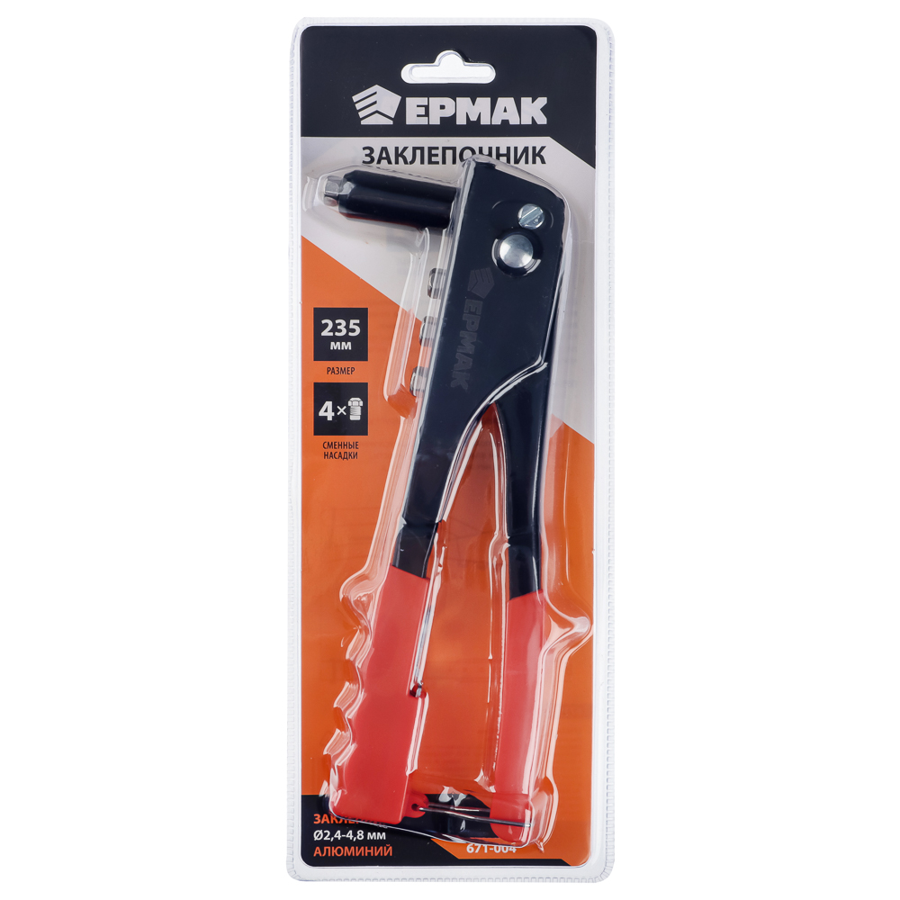 Ручной заклепочник ЕРМАК 235 мм – инструмент, предназначенный для соединения металлических деталей между собой при помощи алюминиевых заклепок.