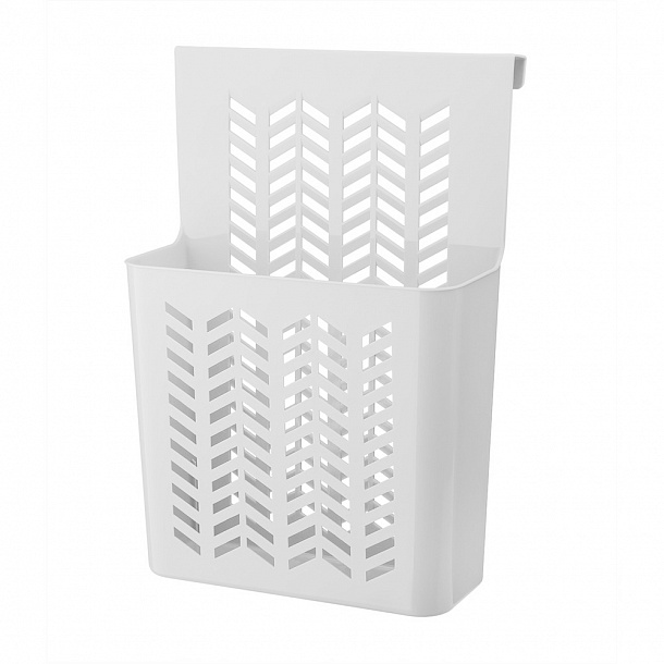 Большая корзина шириной 24 см крепится на дверцу шкафа или ящик с помощью загнутого верхнего края.