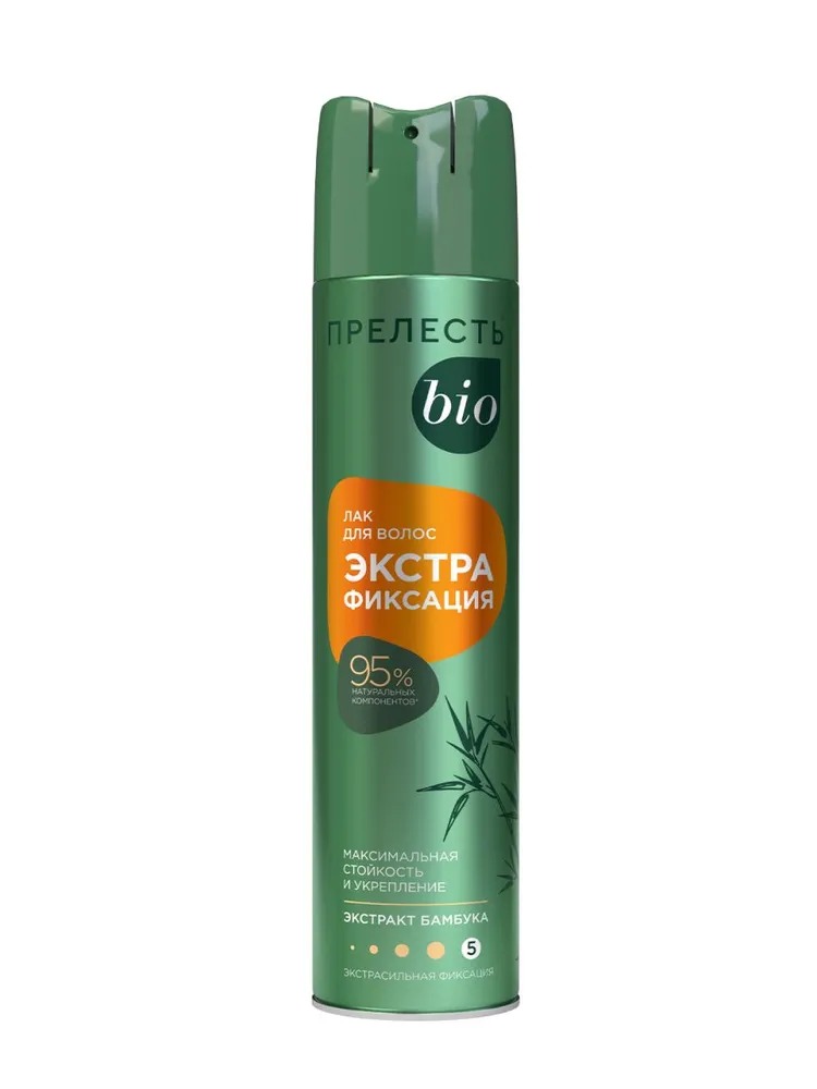 Лак для волос Прелесть-био "С экстрактом бамбука" великолепно фиксирует укладку и надежно сохраняет ее в течение всего дня без склеивания и утяжеления.