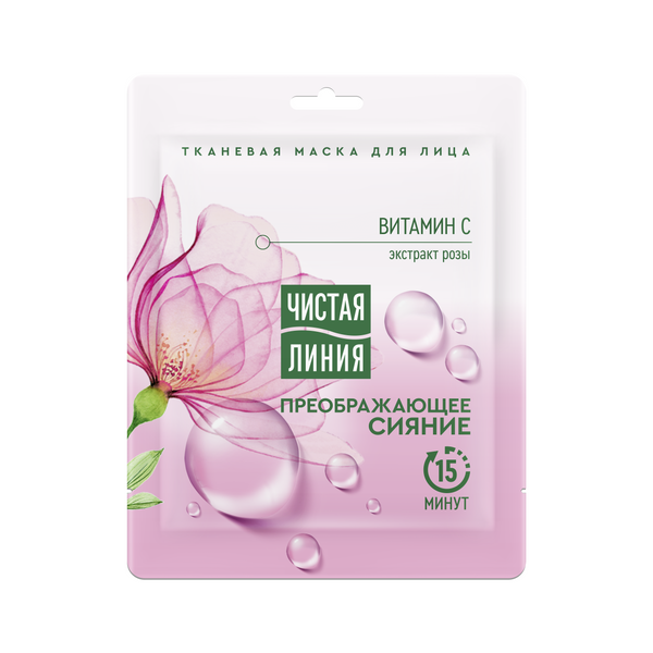 Тканевая маска для лица "Экспресс-преображение" с витамином С, экстрактом розы и антиоксидантами обеспечивает естественное сияние и омоложение кожи.