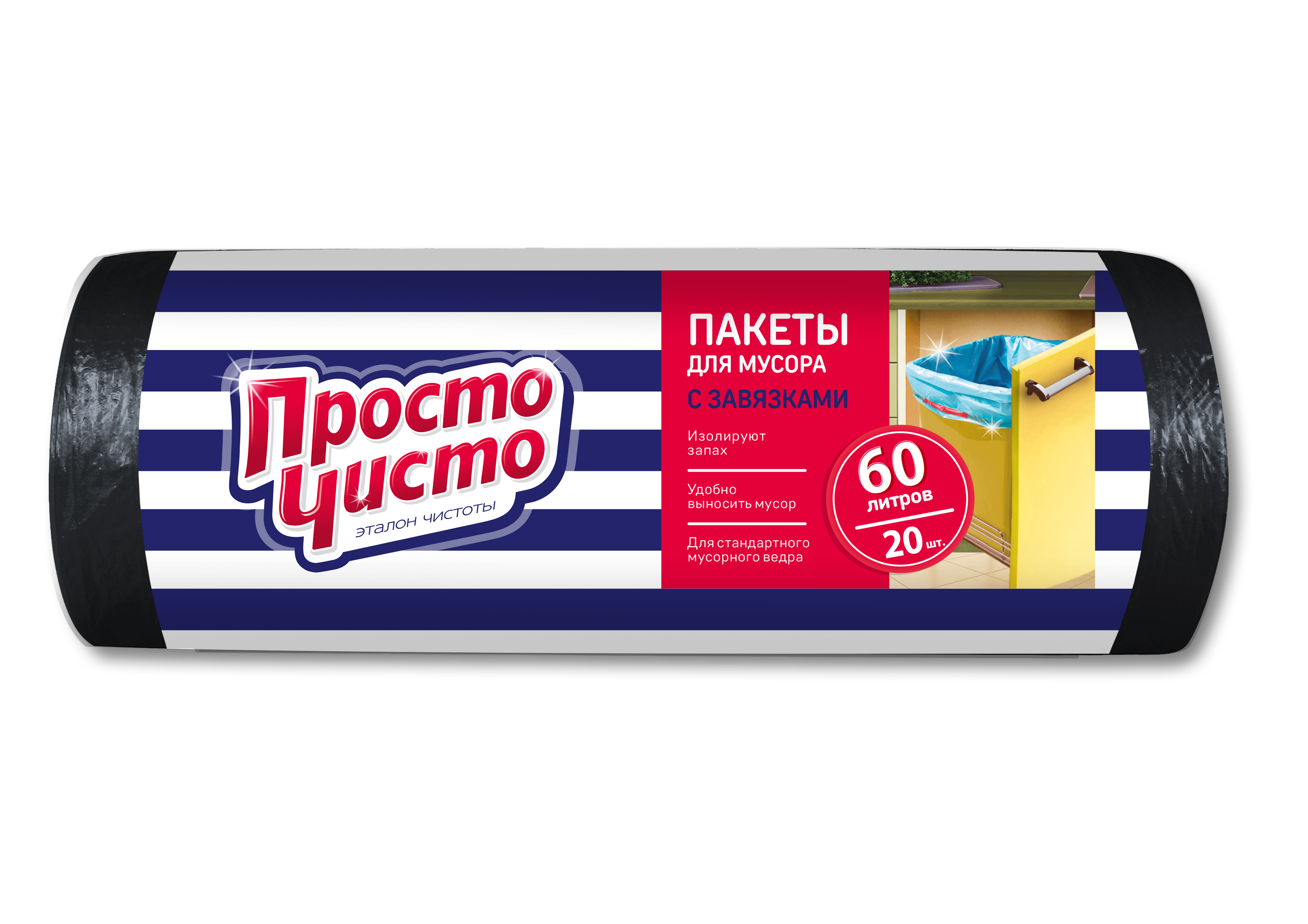 Просто чисто пакеты для мусора 20шт (60л) с завязками
