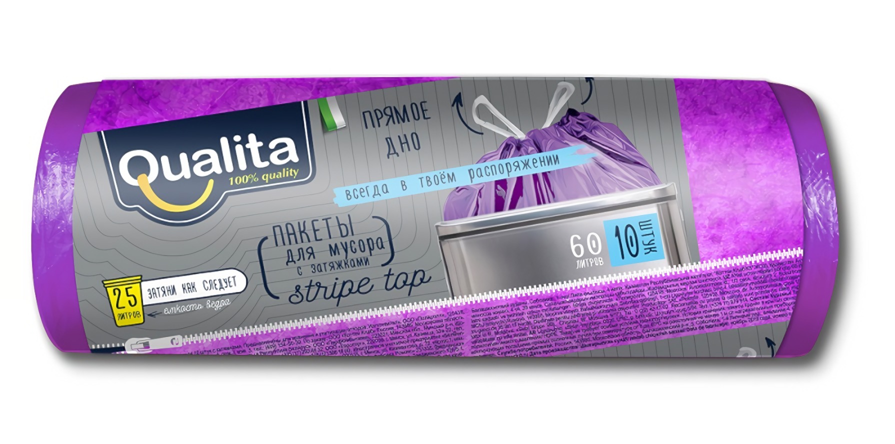 Qualita пакеты для мусора 10шт (60л) с затяжками