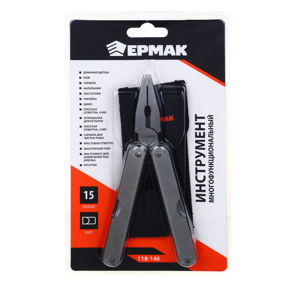 Инструмент многофункциональный тм ЕРМАК, 15 функций, 15см, нерж.сталь