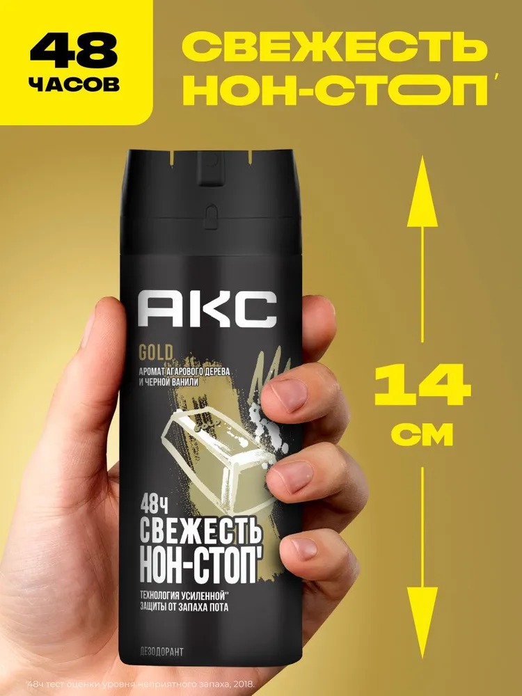 Дезодорант аэрозоль AХЕ (Акс) "Голд" защищает от запаха и дает непробиваемую уверенность.