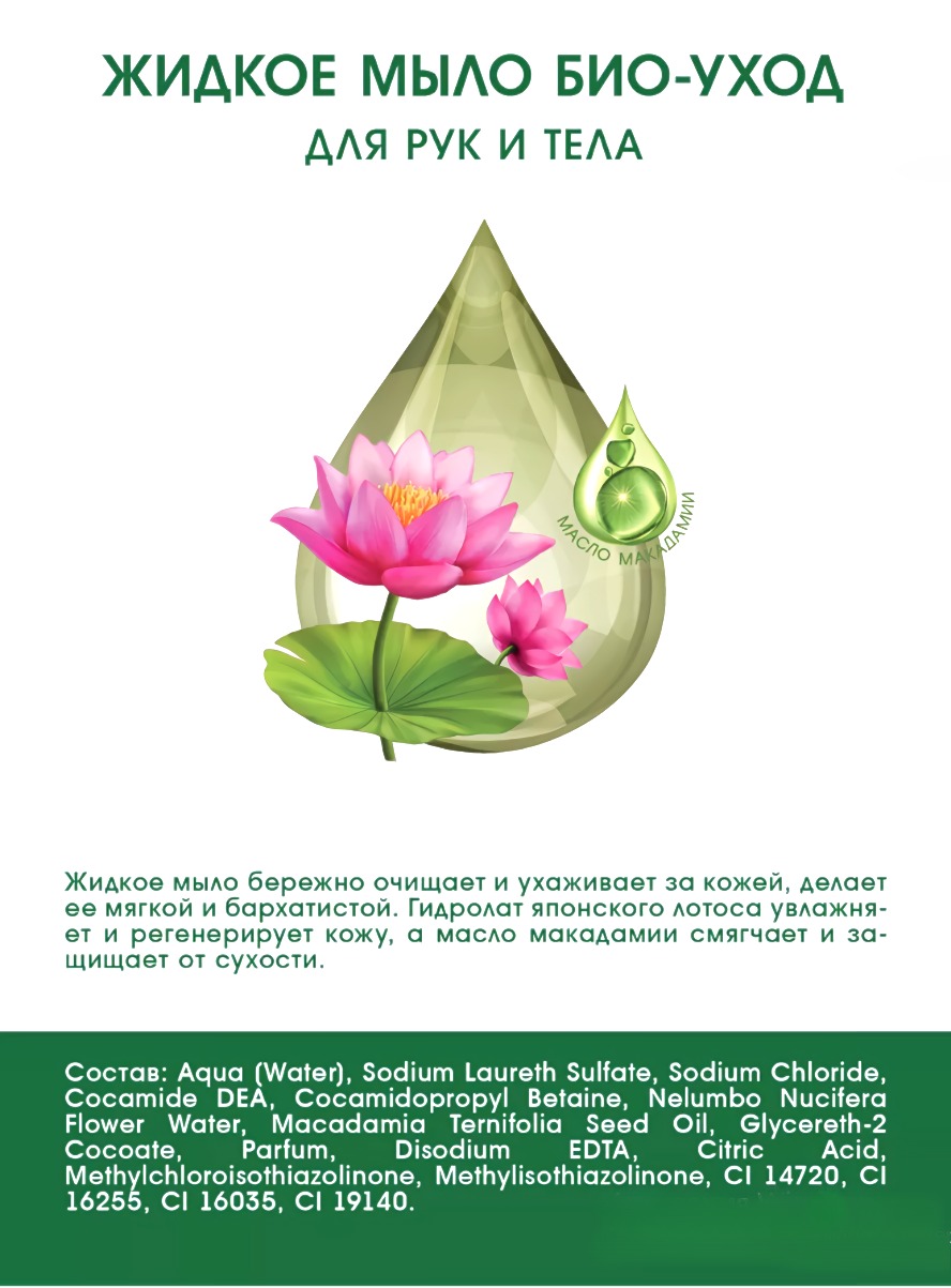 Bioteq Жидкое мыло био-уход для рук и тела с гидролатом японского лотоса 620мл