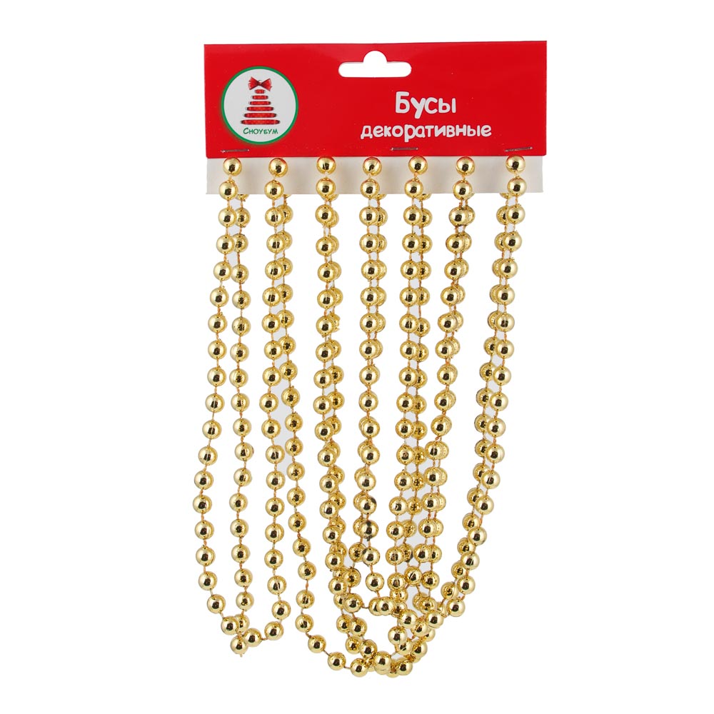 СНОУ БУМ Бусы декоративные, 270см, мелкие d0,73см, пластик, цвет золотой, (А01)