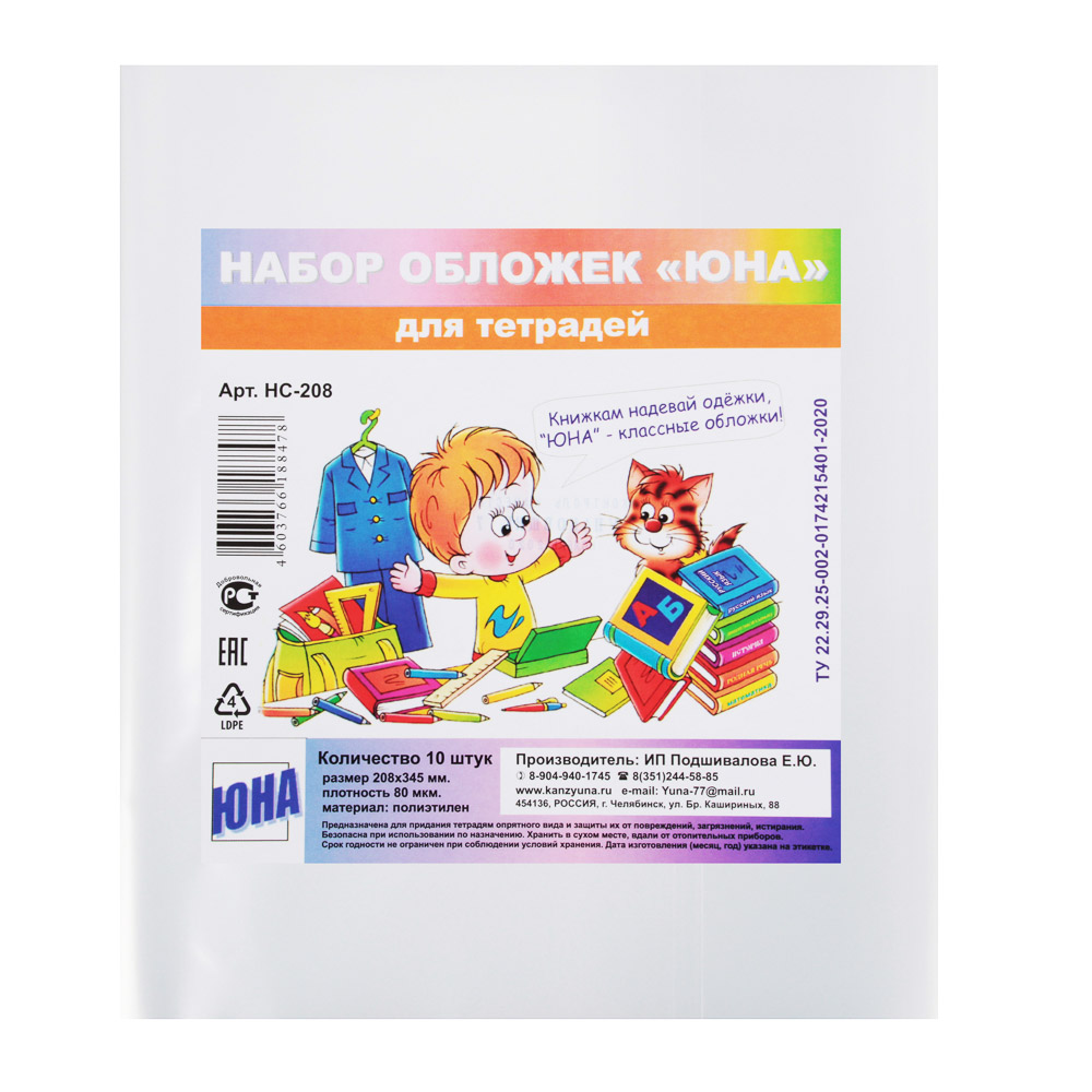 Они изготовлены из плотного полиэтилена высокого давления (ПВД) толщиной 80 мкм, что обеспечивает надёжную защиту тетрадей от грязи, влаги и механических повреждений.