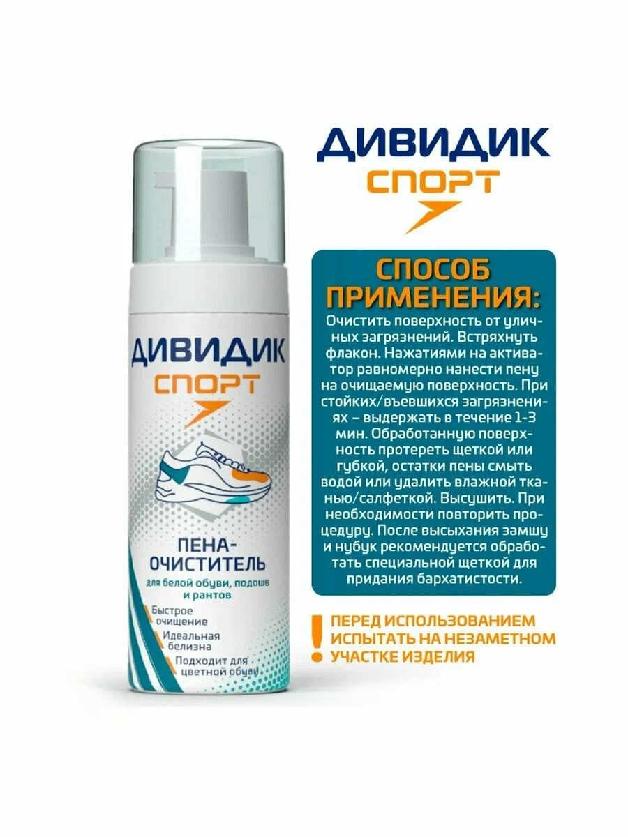 Дивидик пена-очиститель для белой обуви подошв и рантов Спорт150 мл