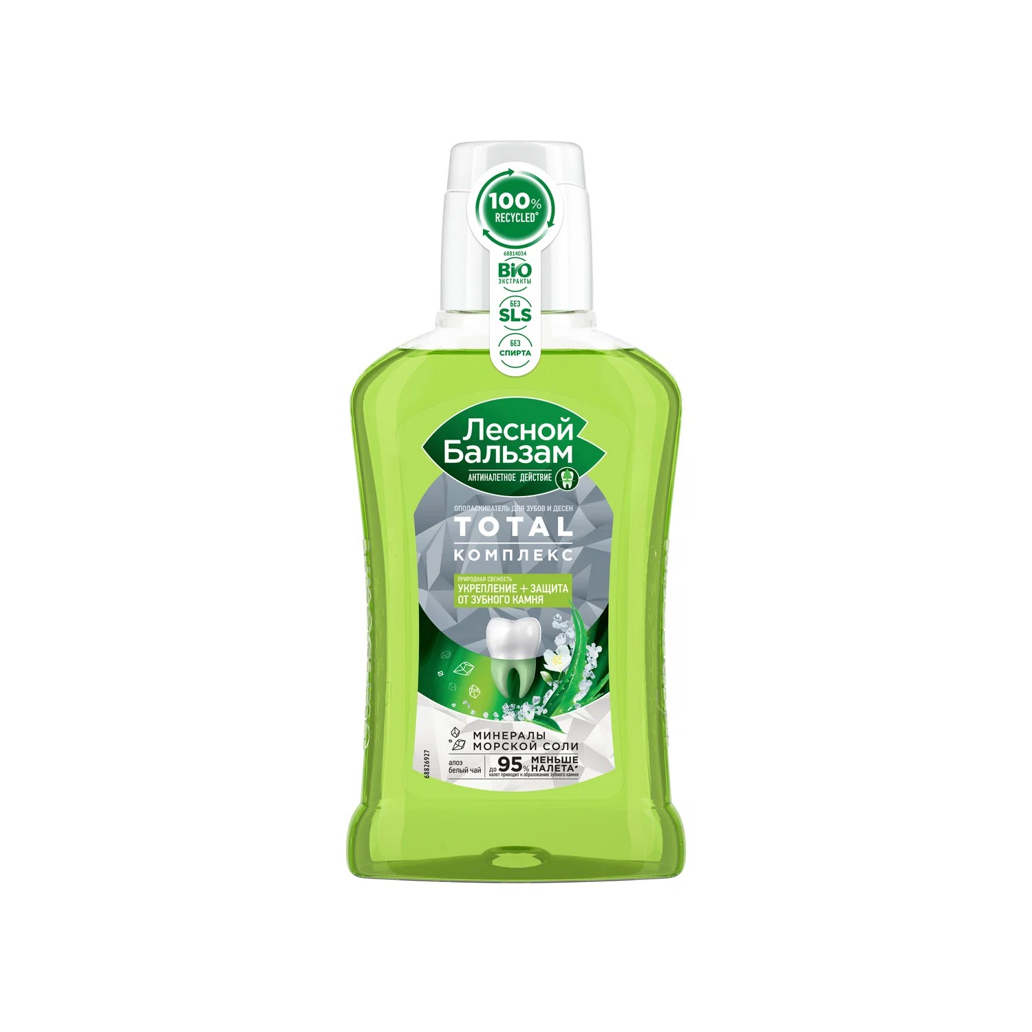 Формула ополаскивателя Лесной бальзам Природная свежесть на 98% состоит из ингредиентов натурального происхождения, интенсивно очищает зубы от налета, защищает от зубного камня и препятствует развитию кровоточивости десен, обеспечивая комплексную защиту всей полости рта, усилена минеральными компонентами и экстрактами трав.