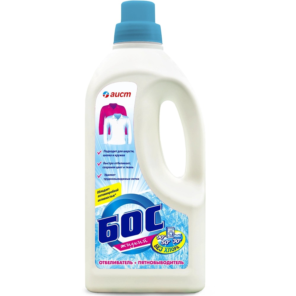 Жидкий отбеливатель "БОС" предназначен для отбеливания хлопчатобумажных, льняных, смесовых, синтетических тканей.