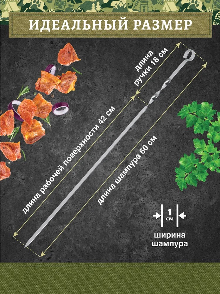 Удобство использования: плоские шампуры позволяют легко переворачивать и обжаривать продукты, а также готовить большие порции;
