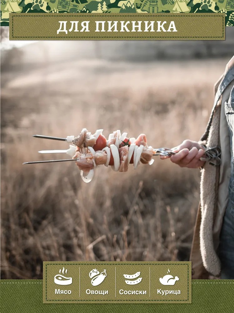 Компактный размер: набор шампуров упакован в блистер, который легко помещается в сумку или рюкзак, поэтому его удобно брать с собой на природу;