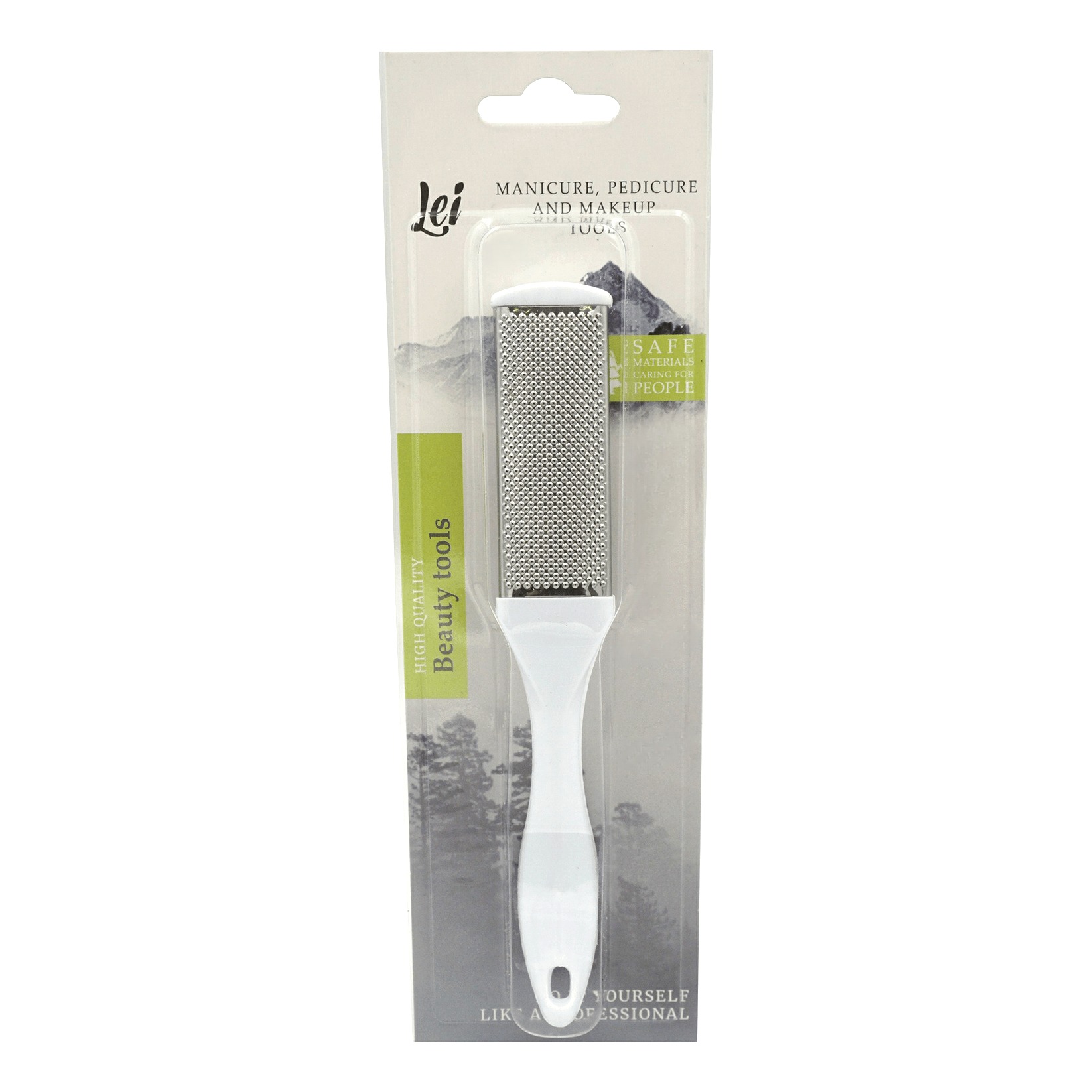 Педикюрная металлическая терка подходит для удаления огрубевшей кожи стоп.