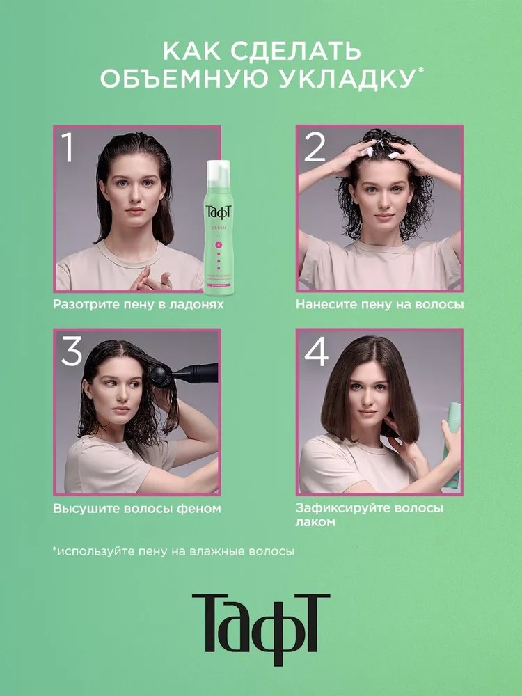 Пена TAFT Объём обеспечит превосходную фиксацию и защиту укладки до трех дней в любую погоду: от ветра, влажности,